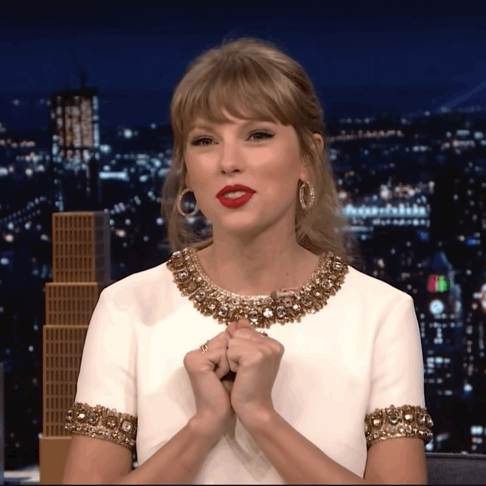 Taylor Swift wearing the Small Casey Hoops on The Tonight Show with Jimmy Fallon.